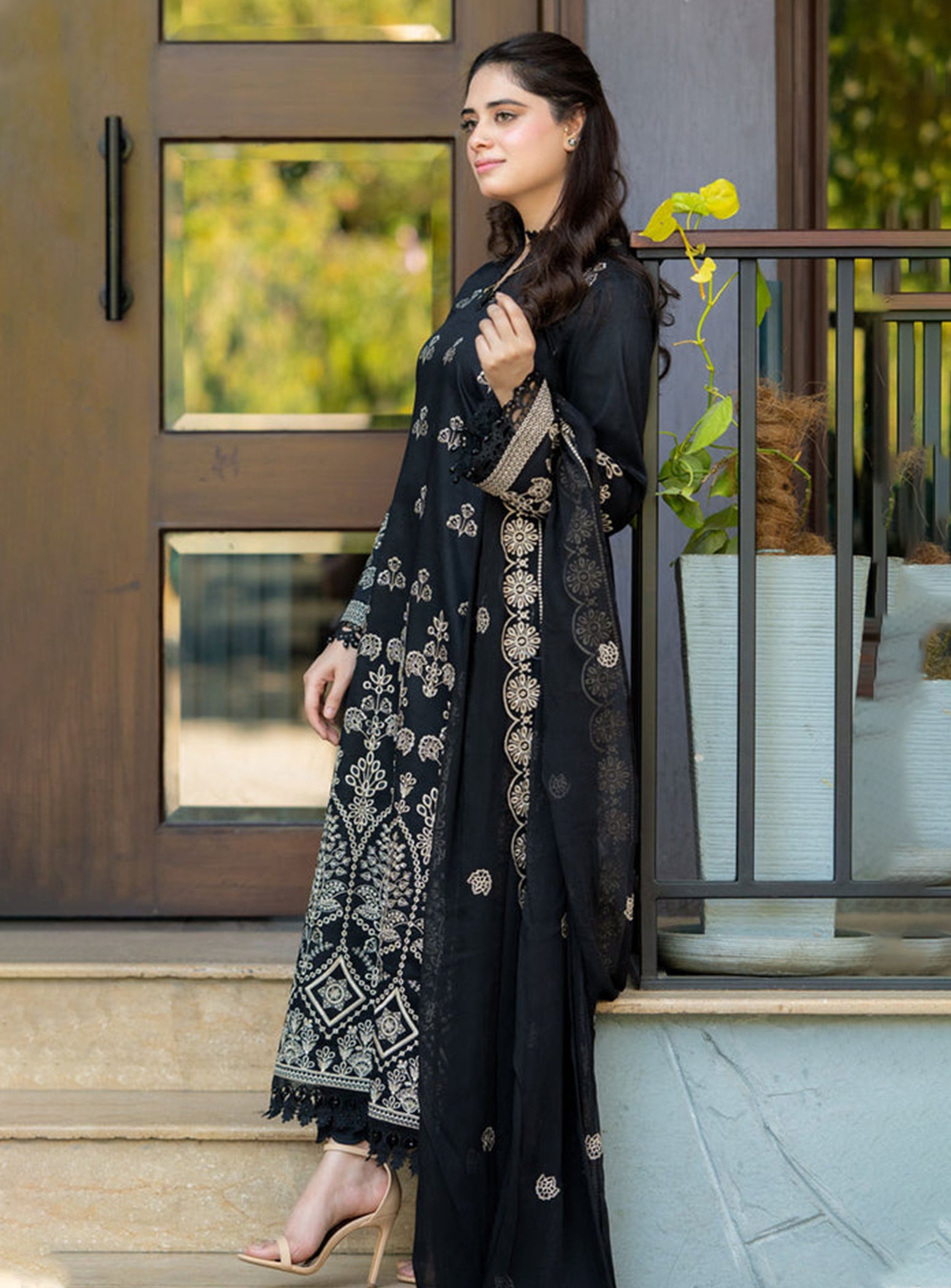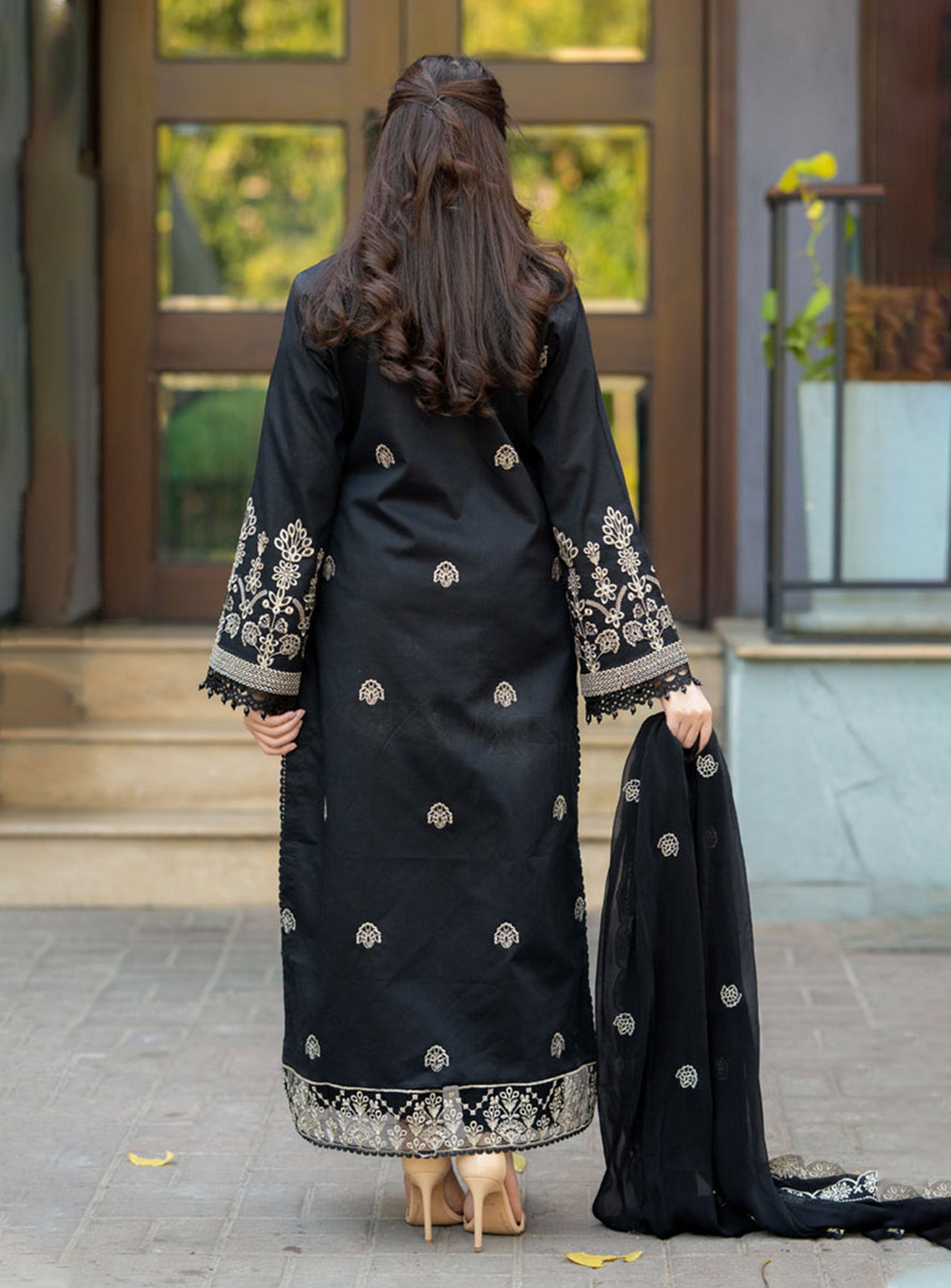 🌟 A chic Black outfit with embroidery & matching shawl – designed to make you stand out with effortless grace!