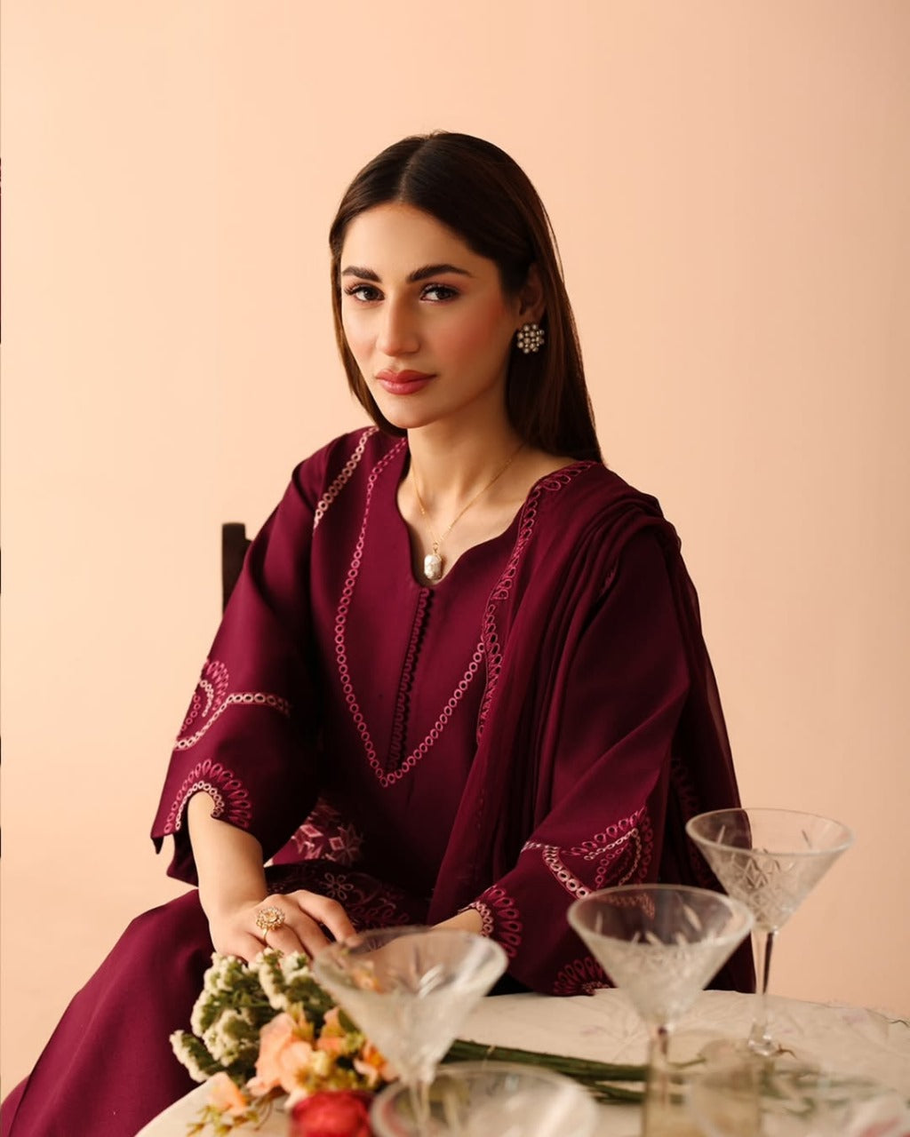 Elevate your everyday look with our Maroon Embroidered 3-Piece Kurta Set 🌸